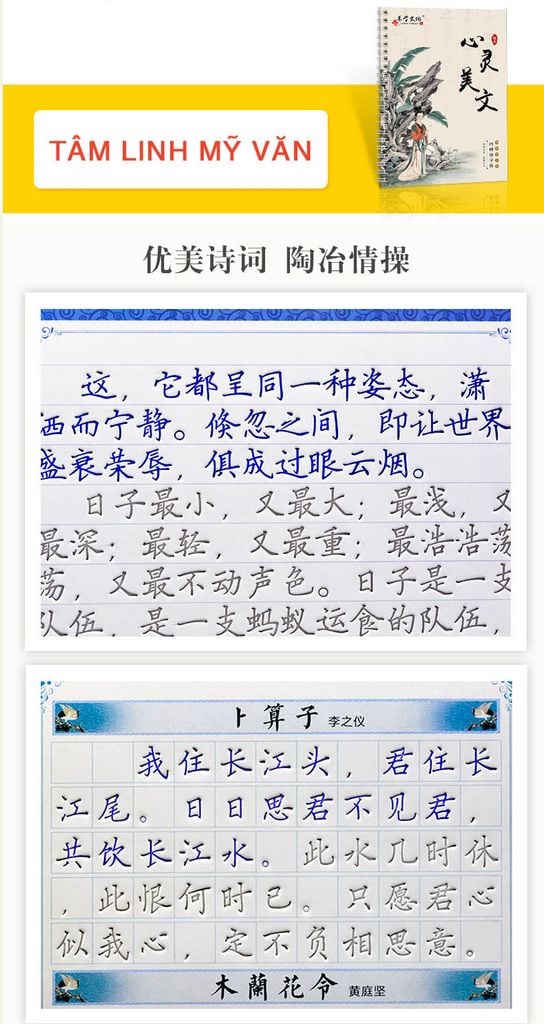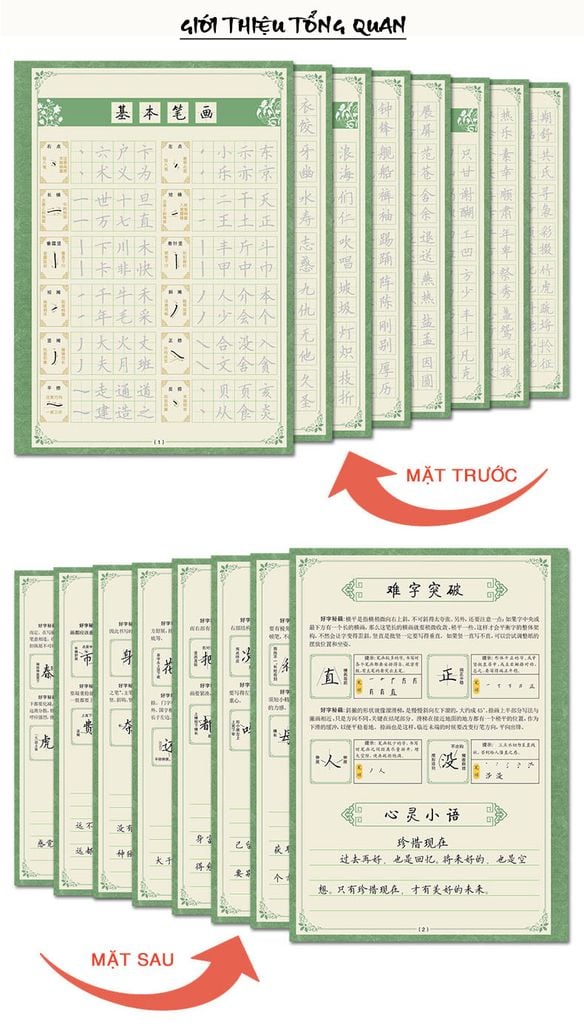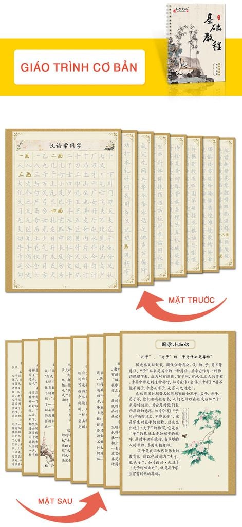 Trong đó đáng chú ý là cuốn: Giáo trình căn bản hướng dẫn viết căn bản và cuốn chữ Hán thường dùng (gồm các chữ thông dụng có tần suất sử dụng cao trong cuộc sống). 03 cuốn còn lại là những cuốn sách có nội dung là thơ văn, danh ngôn.v.v.. có tác dụng bổ trợ, tạo hứng thú cho người học, qua đó luyện tập được nhiều chữ mới, đọc được các bài thơ, đoạn văn hay.