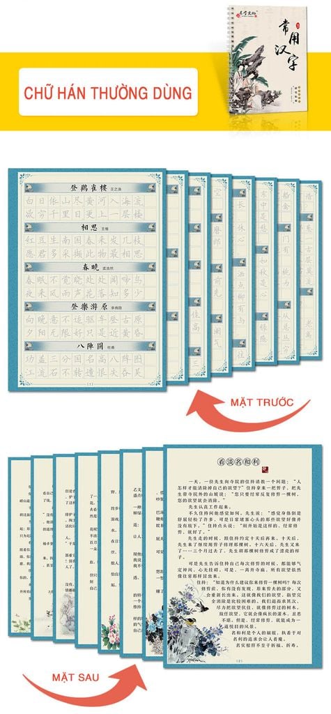 Bộ 05 quyển luyện viết chữ Hán Khải Thư + Tặng bút bay màu và Vở luyện chữ Hán