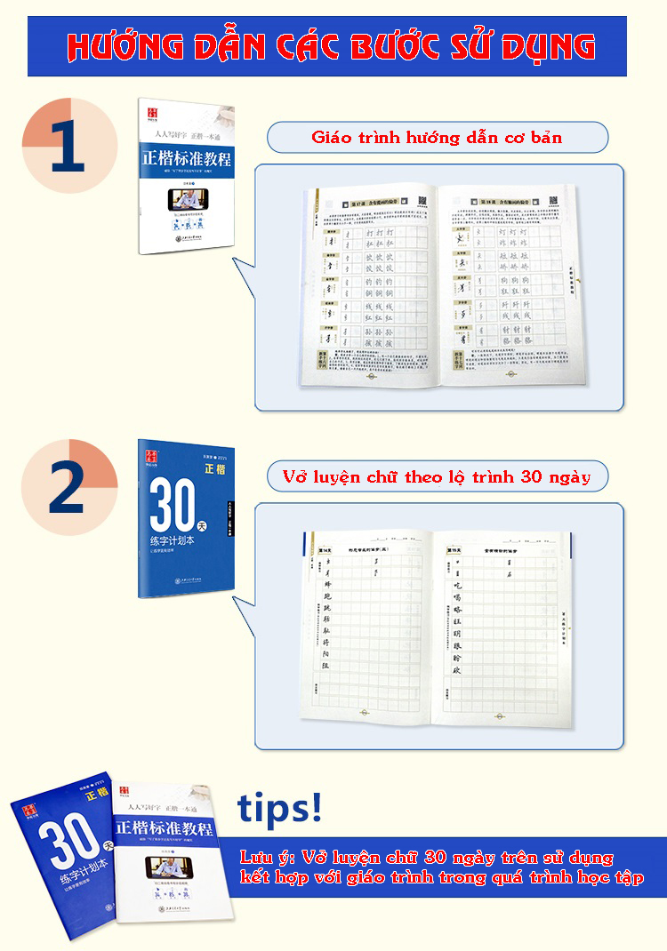 - Sử dụng giáo trình tiêu chuẩn chính khải để học các nét, các bộ thủ cơ bản. Kết hợp với việc xem video hướng dẫn để việc học tập đạt hiệu quả tốt hơn.
