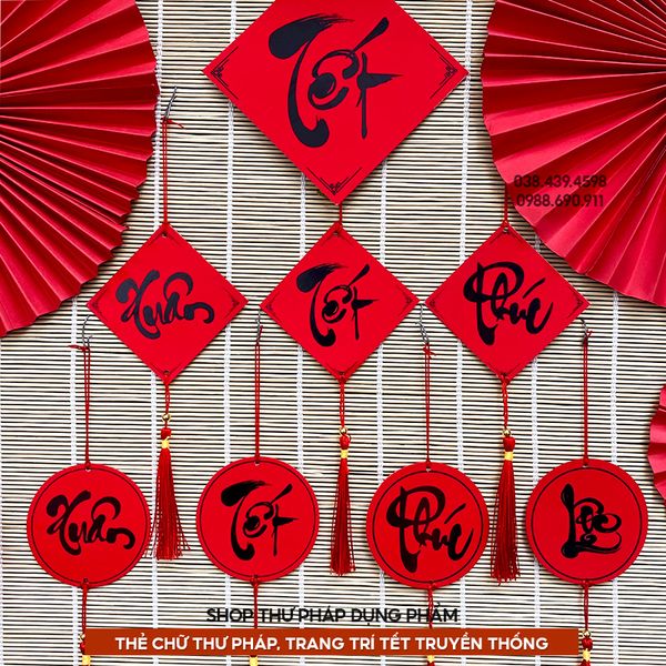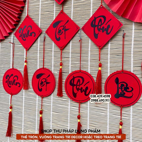 Thẻ chữ thư pháp 8CM treo trang trí tết, làm đồ handmade