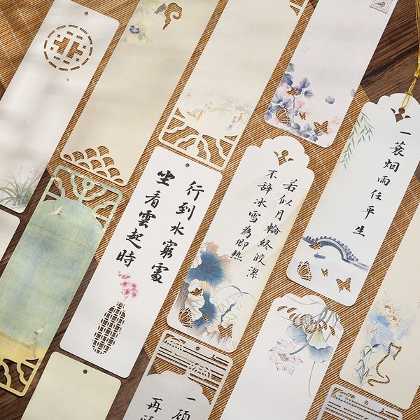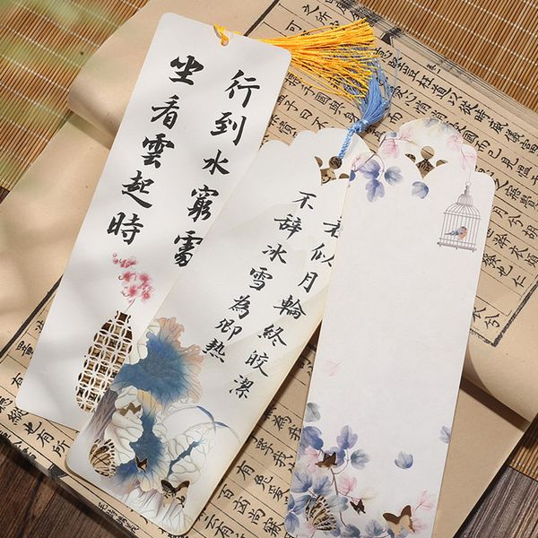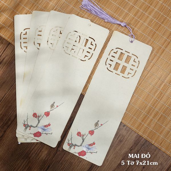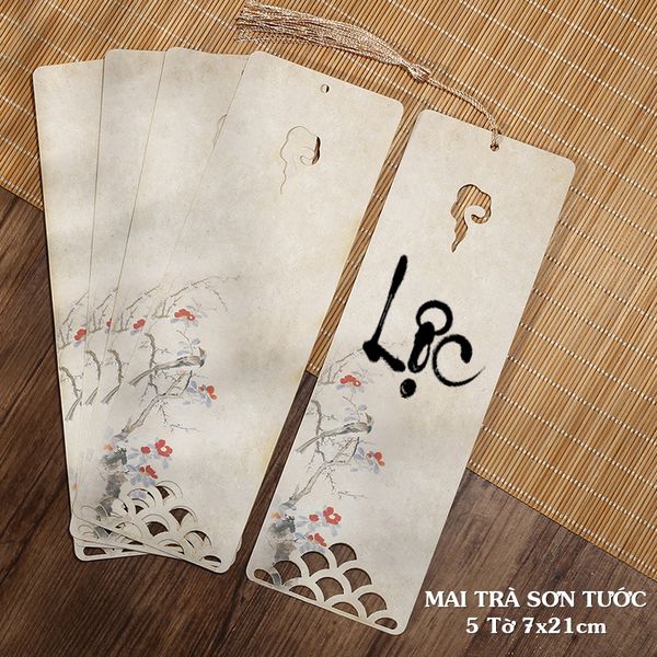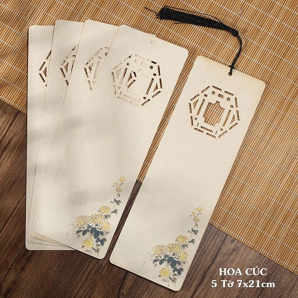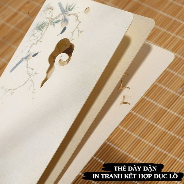 Thẻ giấy viết thư pháp bookmark in tranh kết hợp đục lỗ nghệ thuật treo trang trí