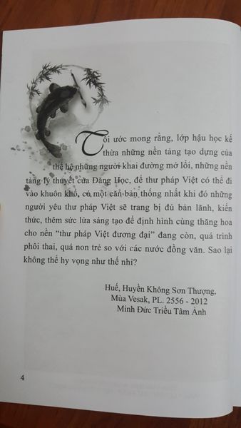 Trong cuốn sách này, Đăng Học phác thảo những sơ khởi về lí luận thư pháp Việt. Bằng kinh nghiệm, kiến thức của mình, anh đã tìm tòi và sáng tạo, mạnh dạng đưa ra phương pháp thực hành, cũng như phân loại các thể chữ như (Điền thể, Thủy thể, Mộc thể, Phong thể, Biến thể) và cách cảm nhận về tác phẩm thư pháp Việt.